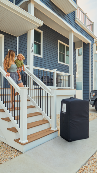 An XL wheeled travel bag that's purpose-built for families and designed to work seamlessly with Veer Valet, our hassle-free gear shipping service. Sized to the max—without triggering shipping carrier surcharges—it fits everything from Pack 'n Plays to joggers to all the beach gear you can throw at it, no matter the brand.