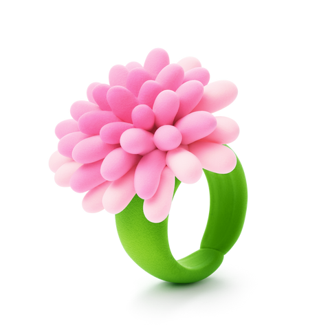 - High-quality clay and interactive app for molding 5 flower-themed rings