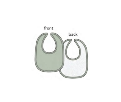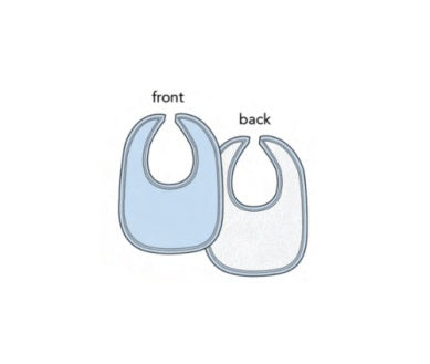 - Bib measures 29.8cm long, 21.5cm wide at the widest point.